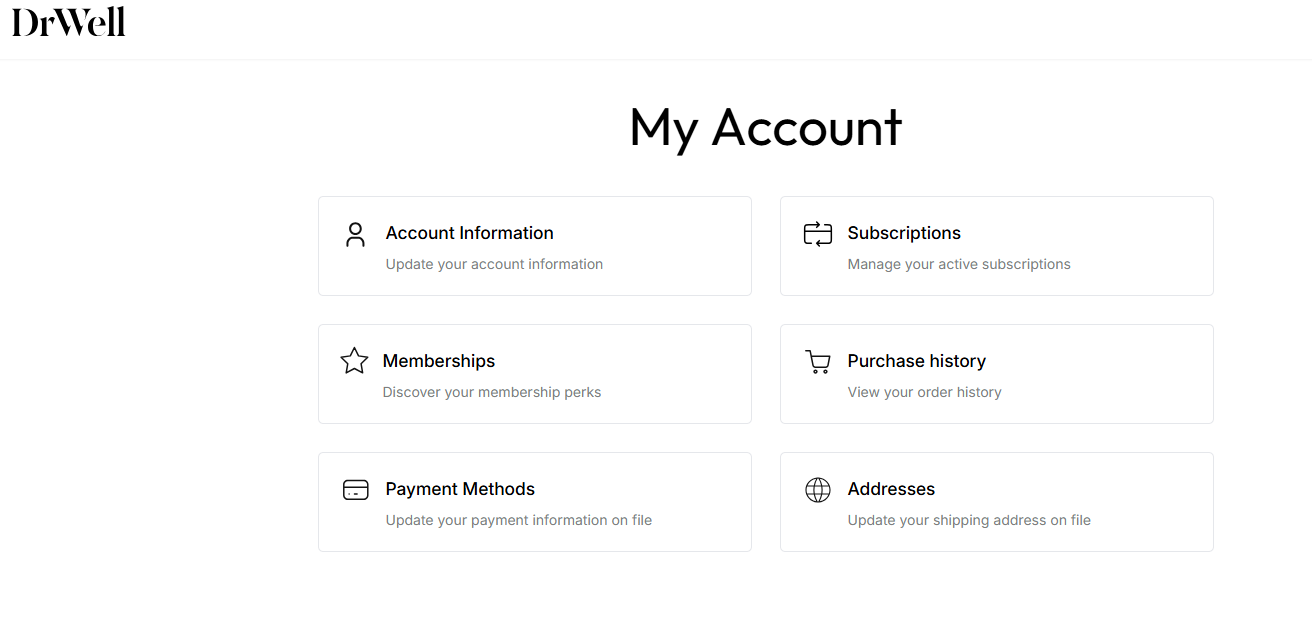 You can change your billing address by logging into your DrWell Account that you created when you enrolled for your subscription through your provider.