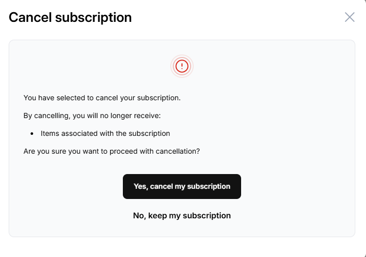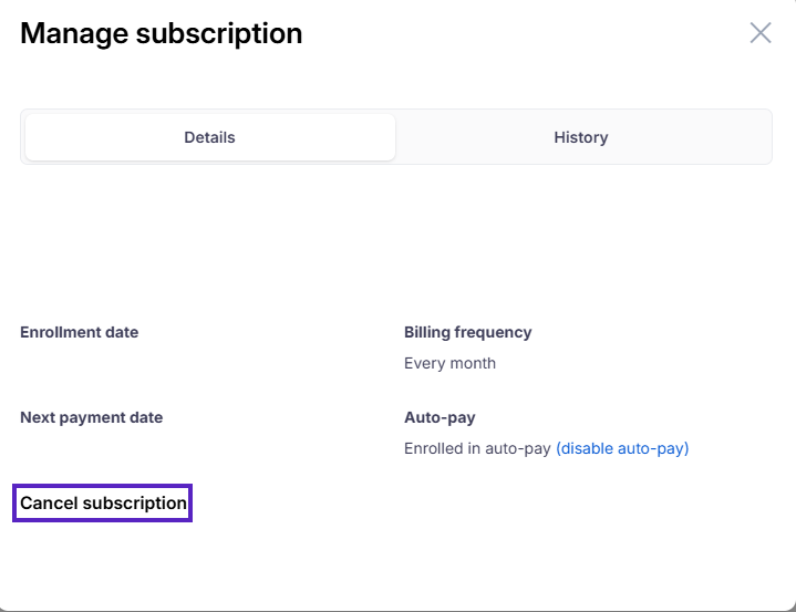 After clicking, yes, cancel my subscription, your subscription will be canceled. To enroll again, you will need to reach out to your provider.