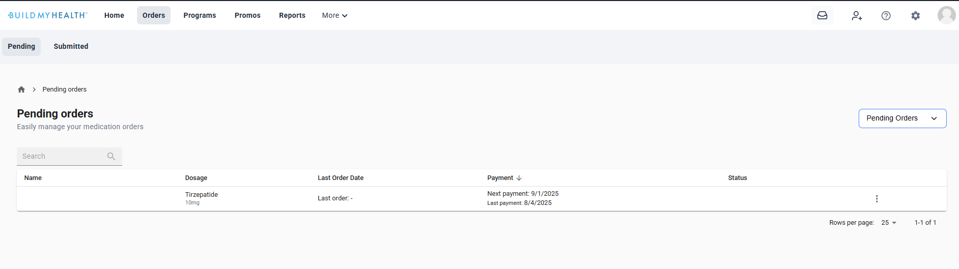 Once your order is successfully placed it will appear in your Submitted Pharmacy Orders.